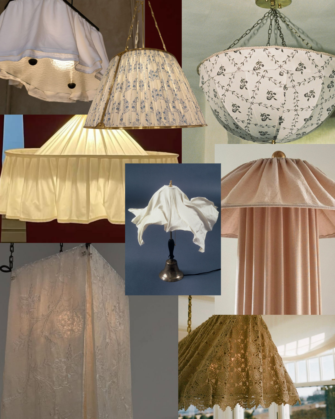 One detail I keep noticing is softened lighting — pleats, gathers, linen shades. Light that diffuses instead of performs.